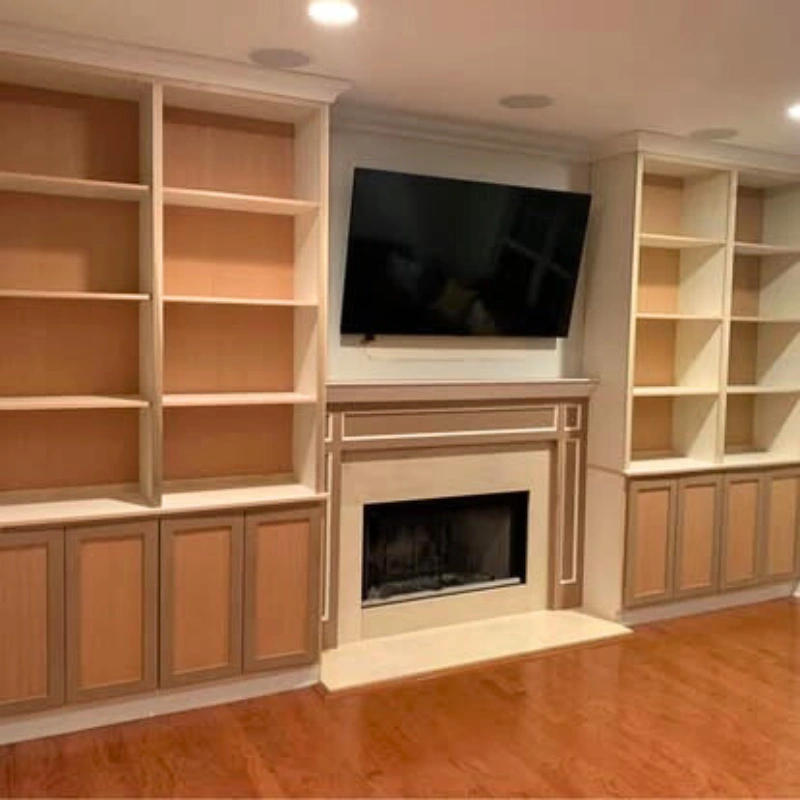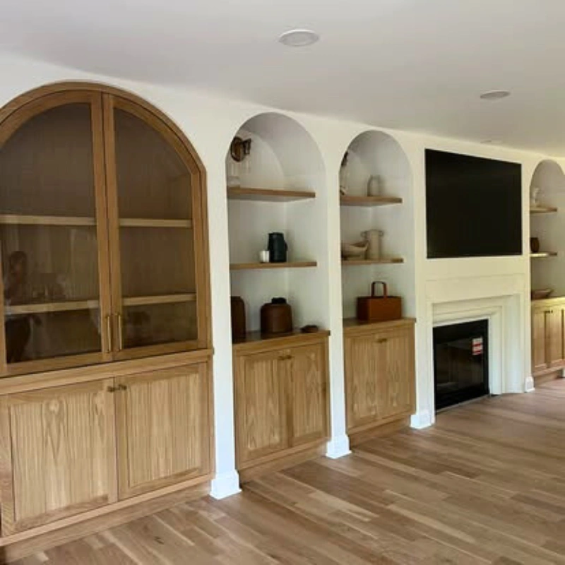 Add warmth and sophistication to your living space with our handcrafted fireplace mantels and detailed wood finishes.